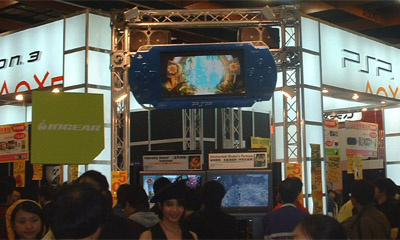 唯一值得一提的是,攤位的大螢幕刻意製作成PSP的樣子,感覺相當有趣。