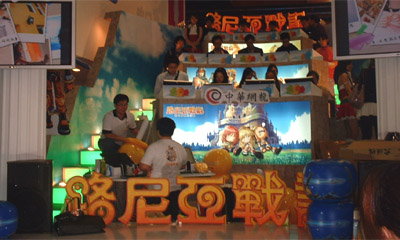 宇峻奧汀這次攤位頗大,除了線上跟單機遊戲的展示動畫與看板,還設置有有舞台區。